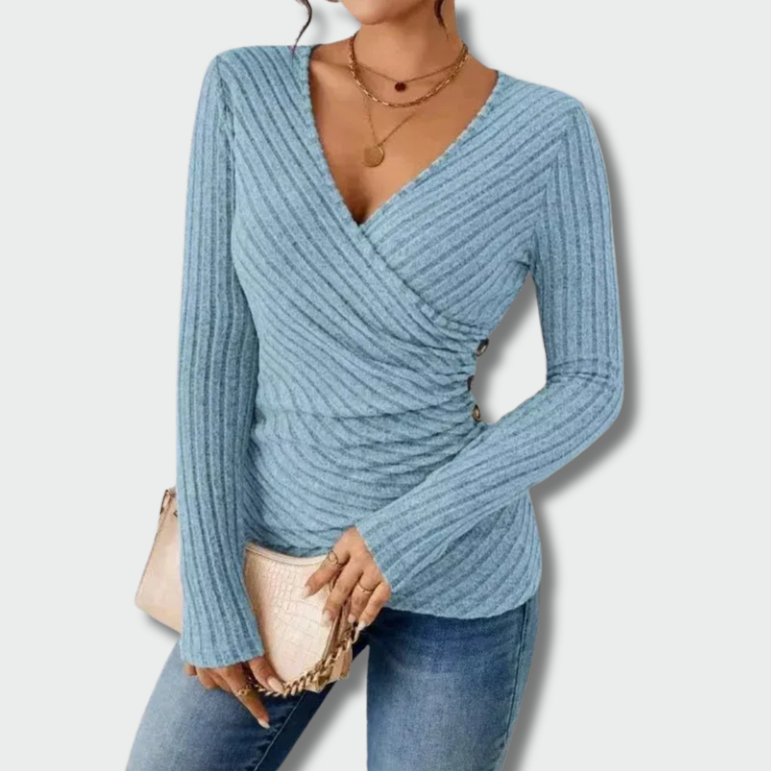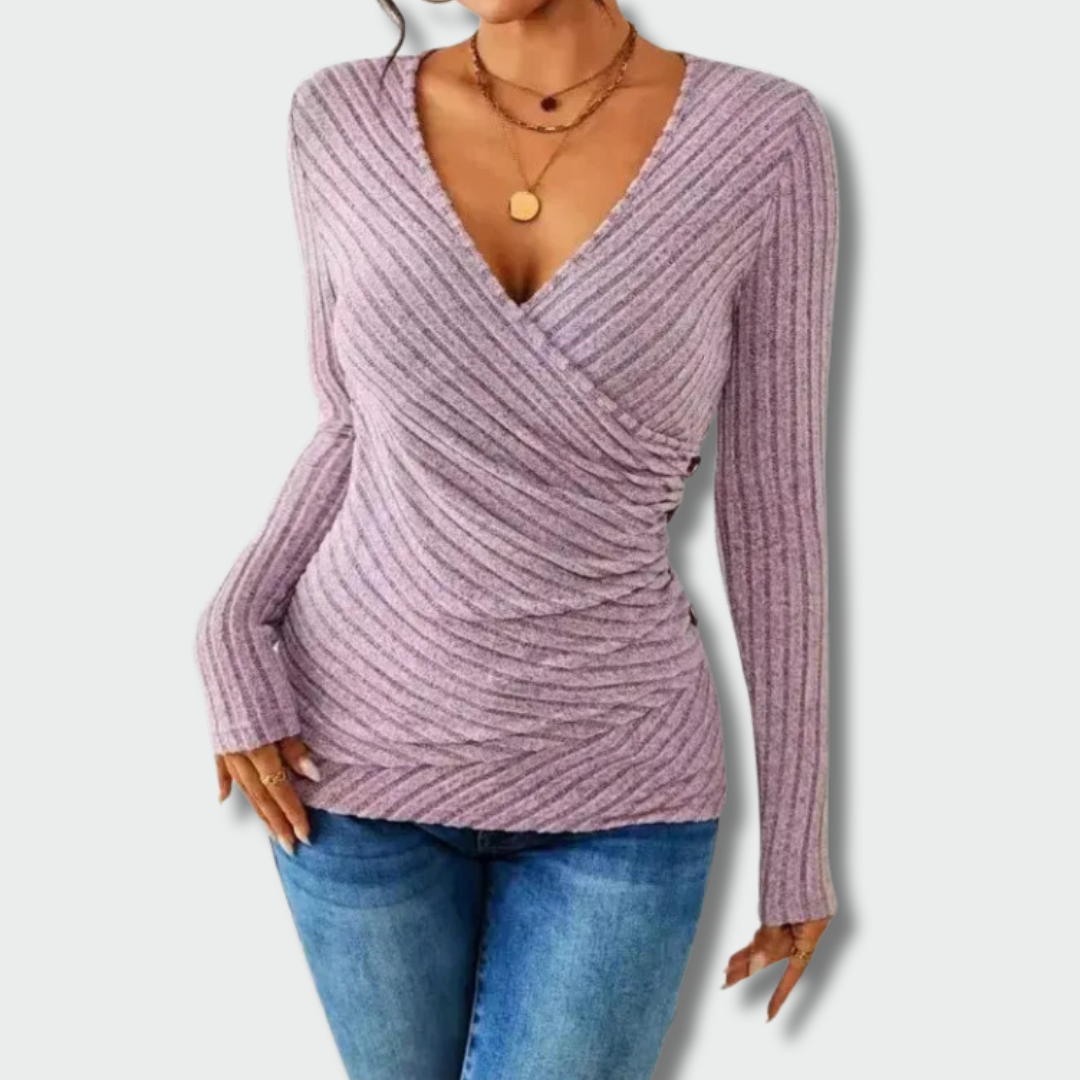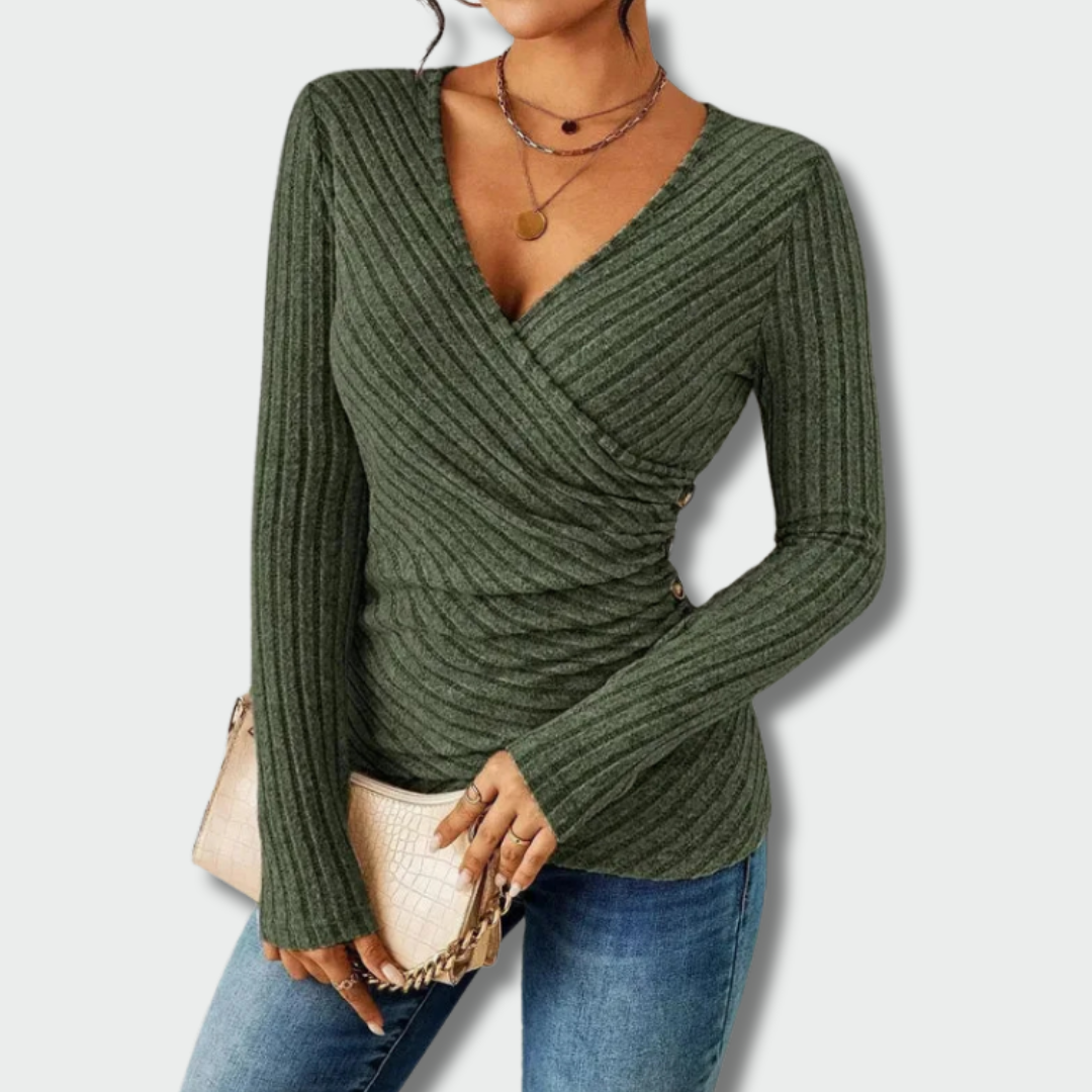 Mūsų ilgomis rankovėmis viršus – tai derinys tarp elegancijos ir komforto. Audinys švelnus, formuojantis liemenį, subtiliai slėpiantis trūkumus ir akcentuojantis gražias jūsų linijas. Puikiai tinka ir kasdienai, ir rudens vakarėliui.