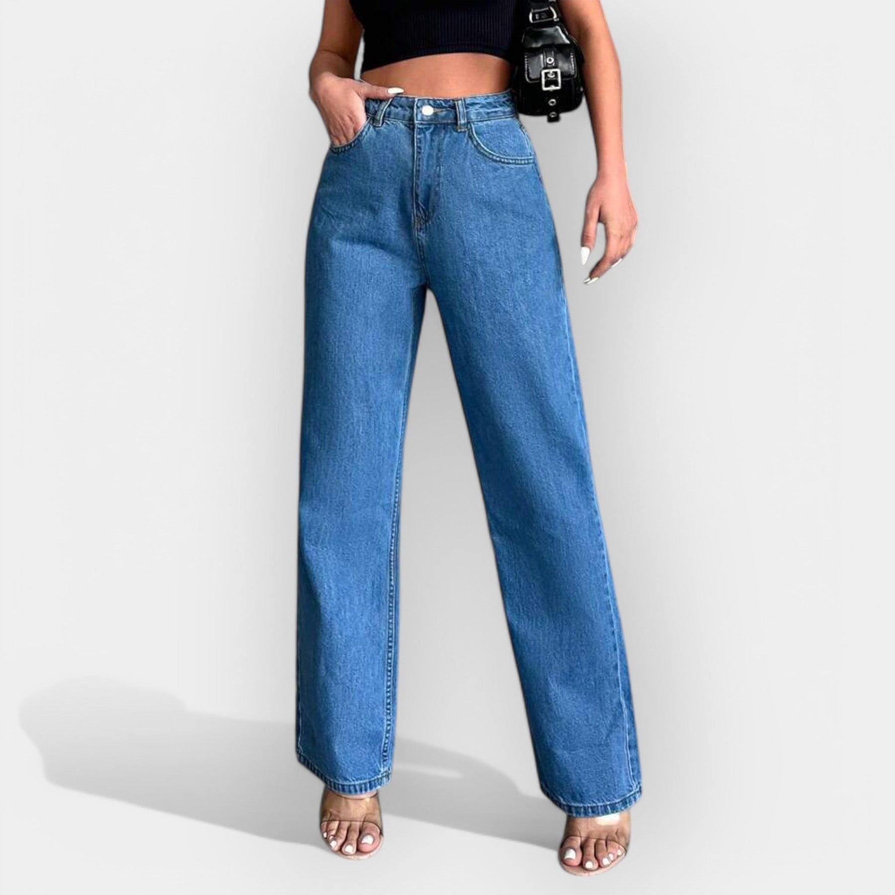Patogūs ir elegantiški džinsai, kurie derina stilių ir komfortą. Su aukštu juosmeniu, kuris išryškina liemenį, ir plačiomis klešnėmis, suteikiančiomis judėjimo laisvę, šie džinsai yra puikus pasirinkimas bet kokiai progai.